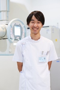 現在は一般撮影、CT、心臓カテーテルなど各モダリティを1日交代で回っています。仕事をする上で大事なことはやはりコミュニケーションです。その部分を怠ると検査もスムーズに行えませんし、何よりも患者様が何の検査をしていて、何のために検査が行われているのか分からず不安に思います。医師・看護師とも普段からコミュニケーションをとり、雰囲気の良い環境作りに気を使っています。
