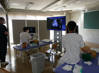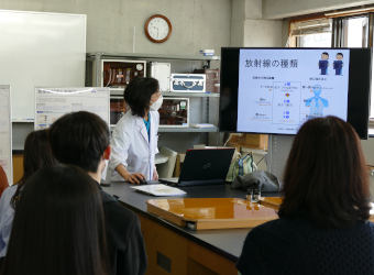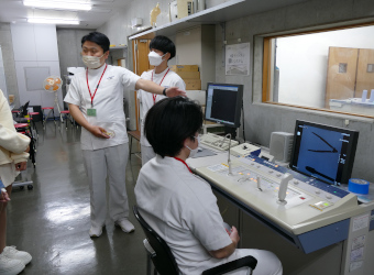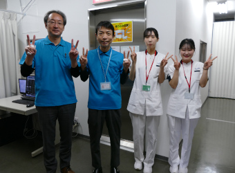 その後に行われた学内ツアーでは、少人数の班ごとに分かれて、模擬授業や実際に実習で使用している機器の見学や、体験をしていただきました。