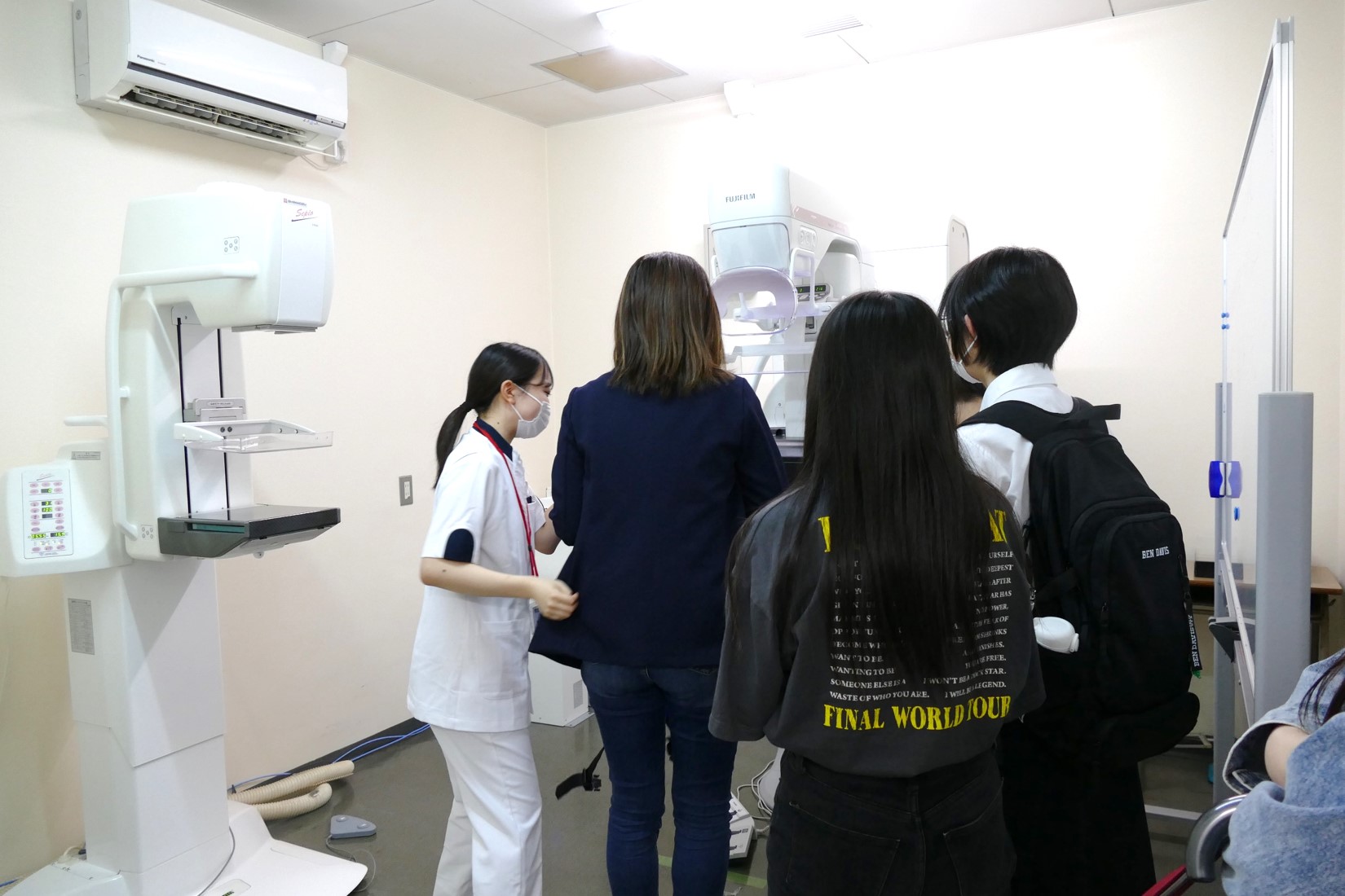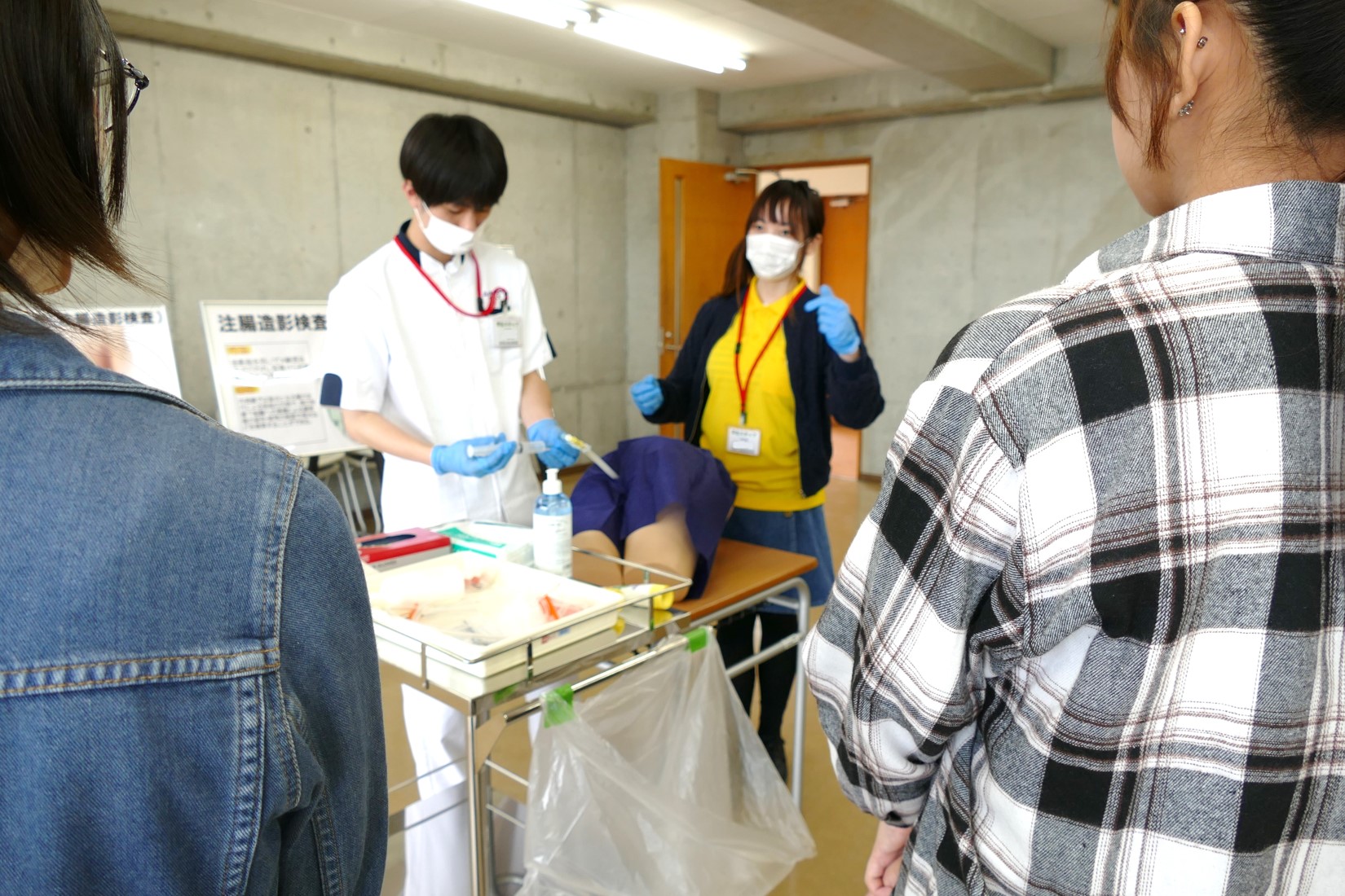 初めに、学長挨拶や大学紹介を行った後、興味のあるブースへ足を運び、模擬授業や実際に実習で使用している機器の見学や、体験をしていただきました。