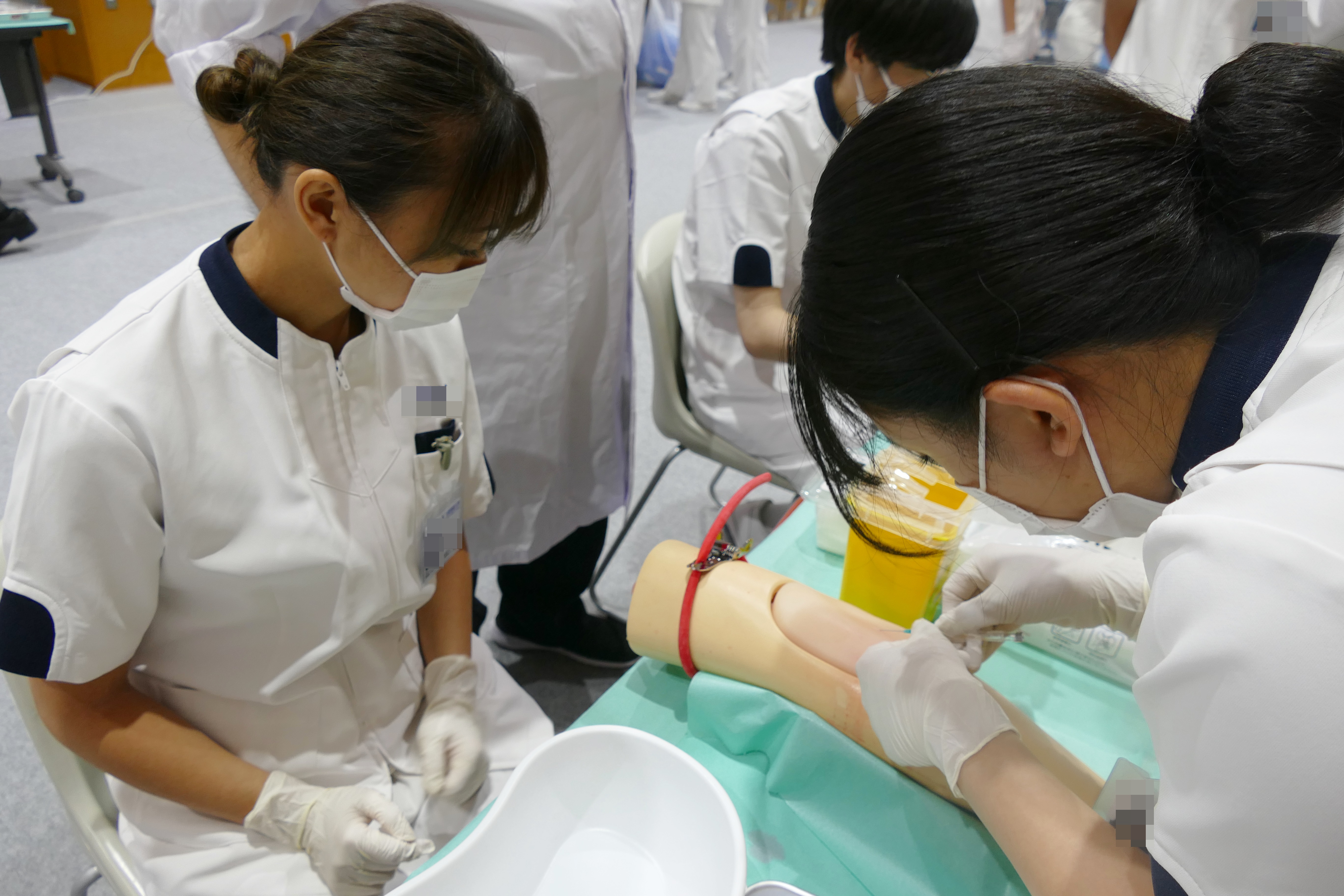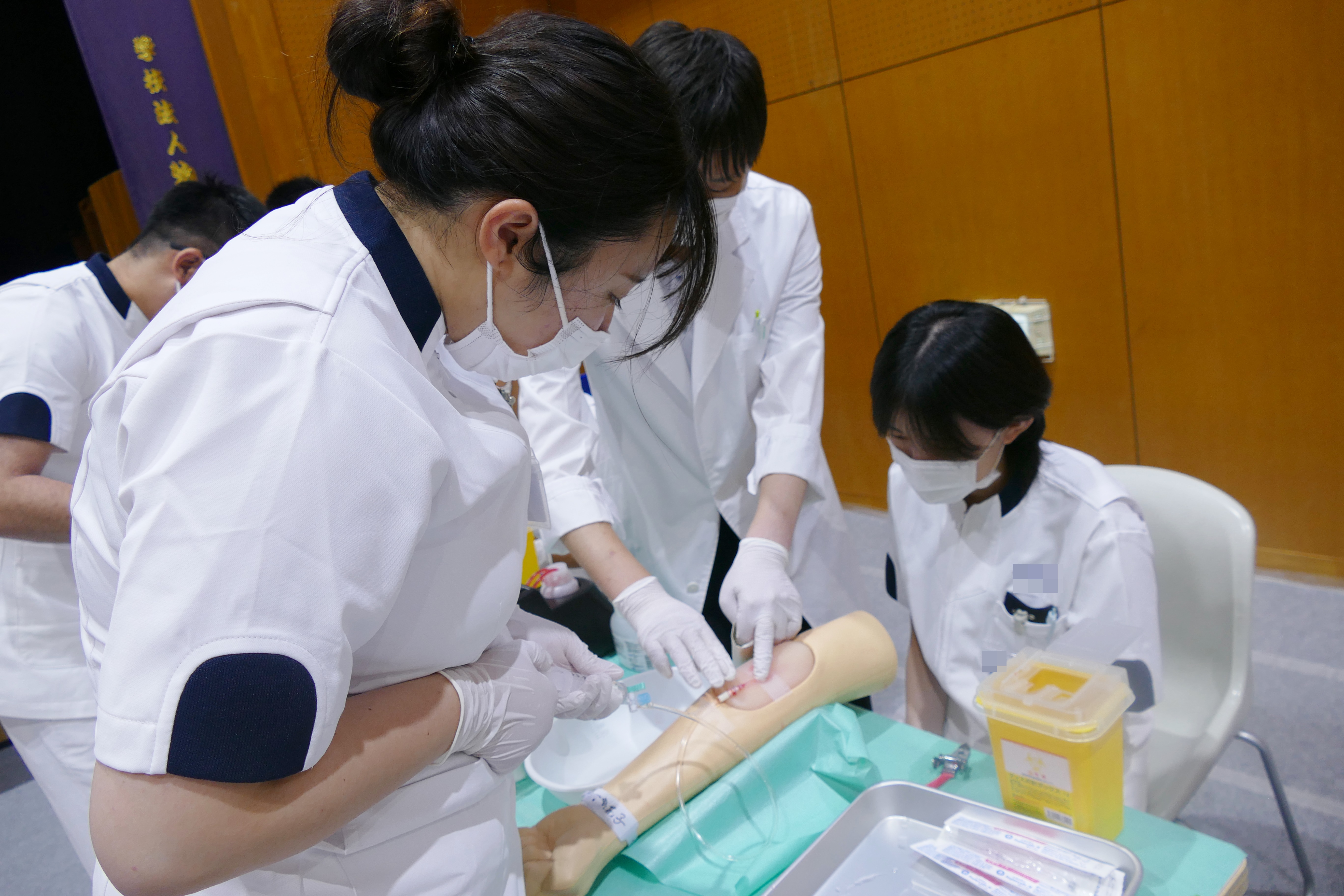 そのため、この研修では、上記の業務を安全に実施できる知識・技術および医療従事者としての適切な態度の習得を目的とし、行いました。