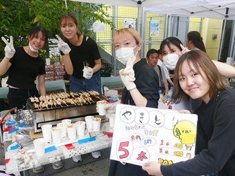 名物の模擬店では、各クラスから、たません、焼き鳥など9店が出店し、どの店も美味しいと評判でした。